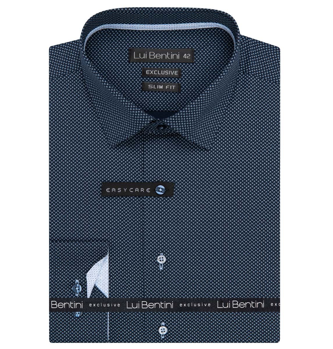 Luxusní pánská košile Lui Bentini s dlouhým rukávem v projmutém (slim) střihu. Pánská košile Lui Bentini v tmavě modré b...