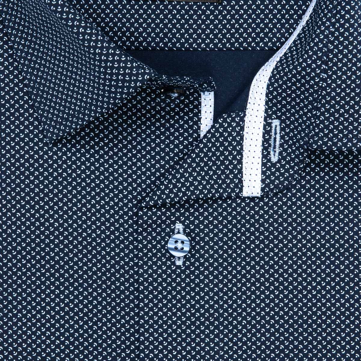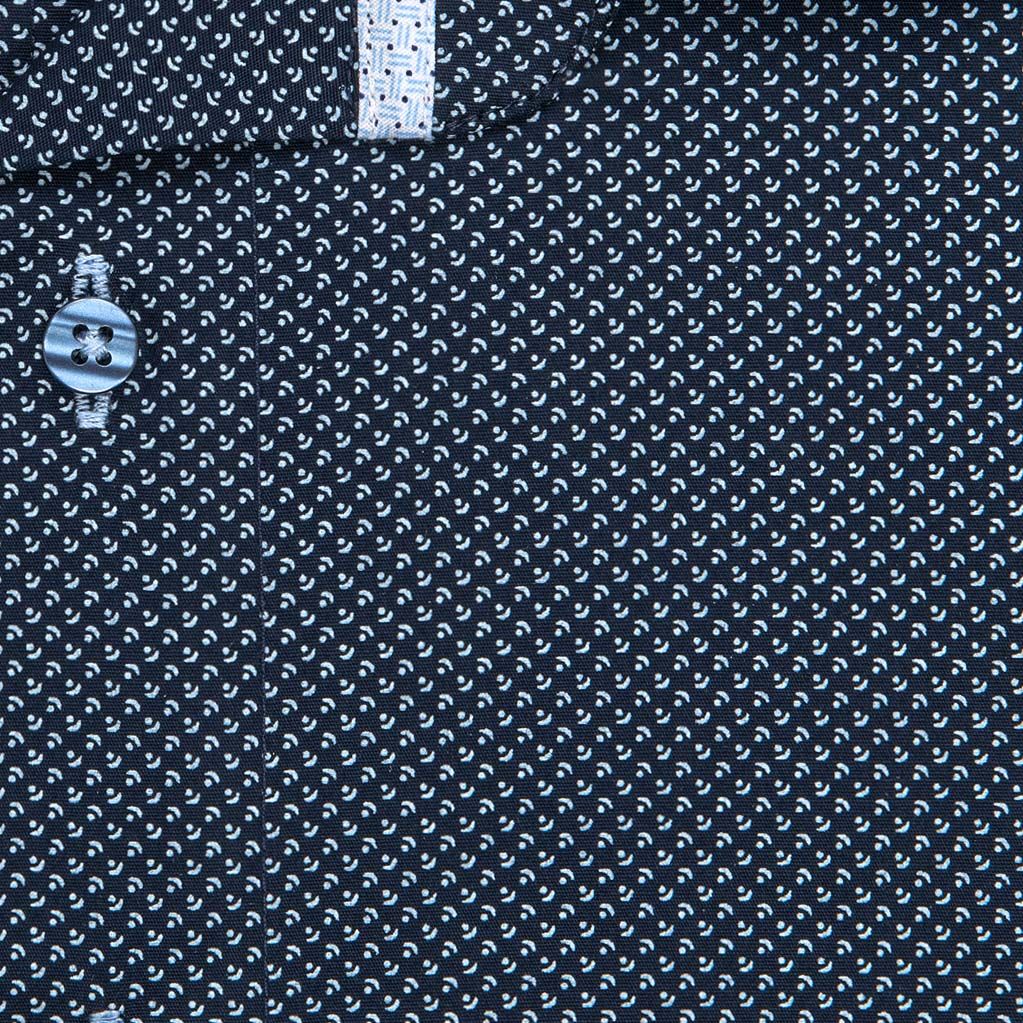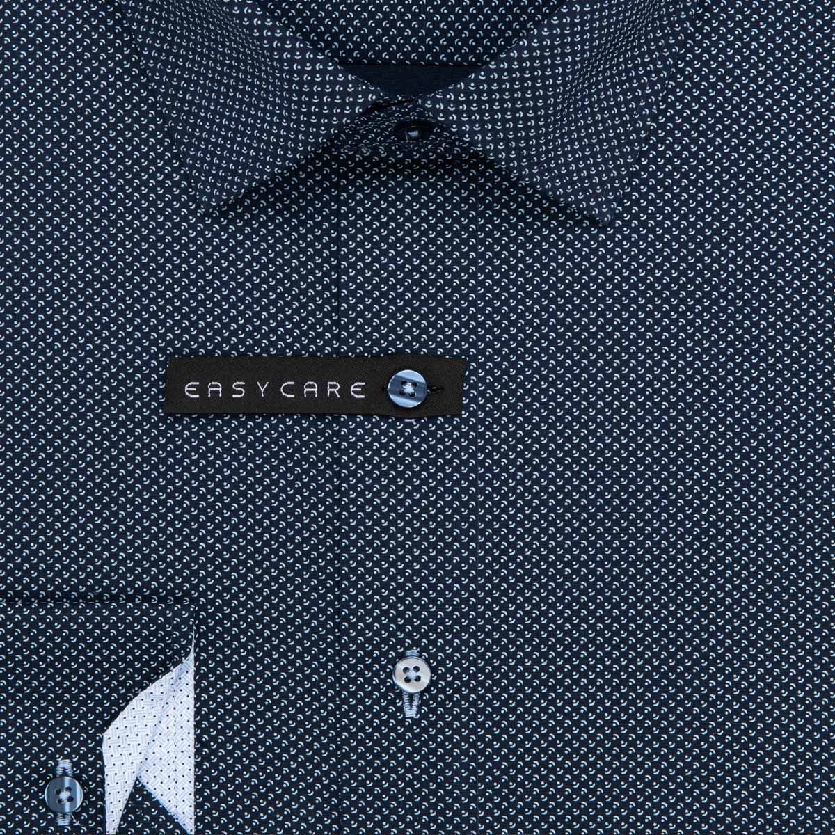 Pánská košile Lui Bentini, tmavě modrá s bílými vlnkami s tečkami LDS243, dlouhý rukáv, slim fit