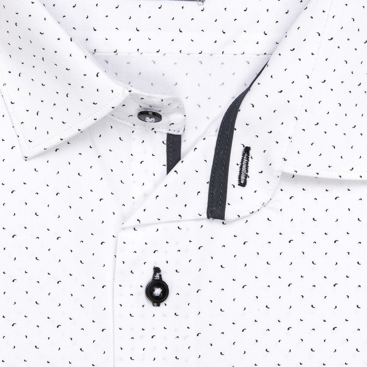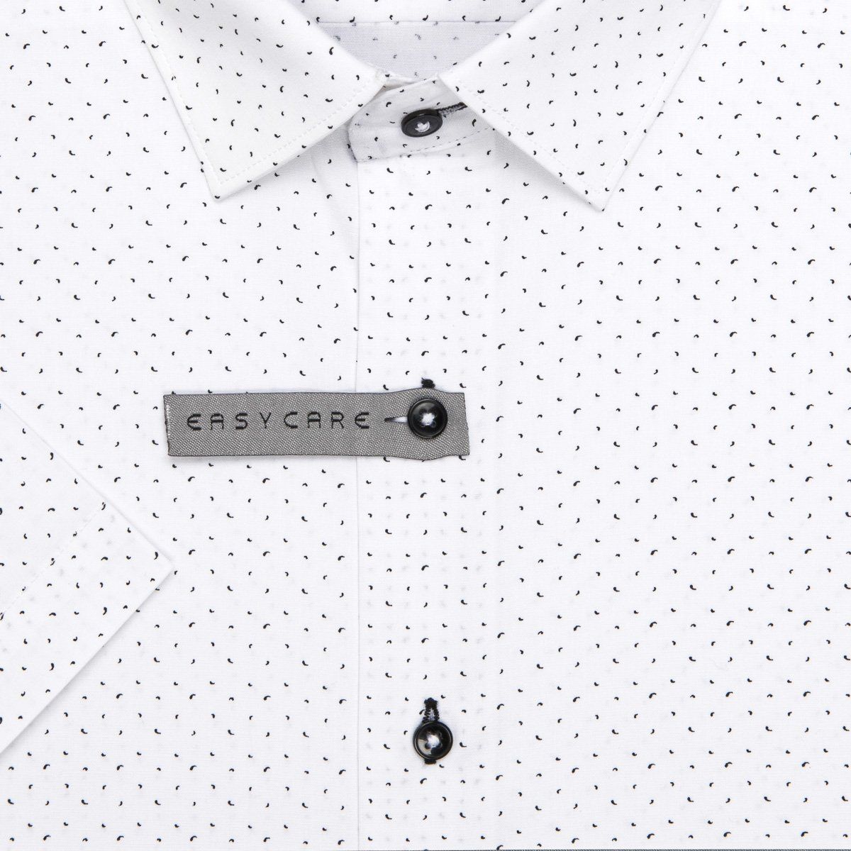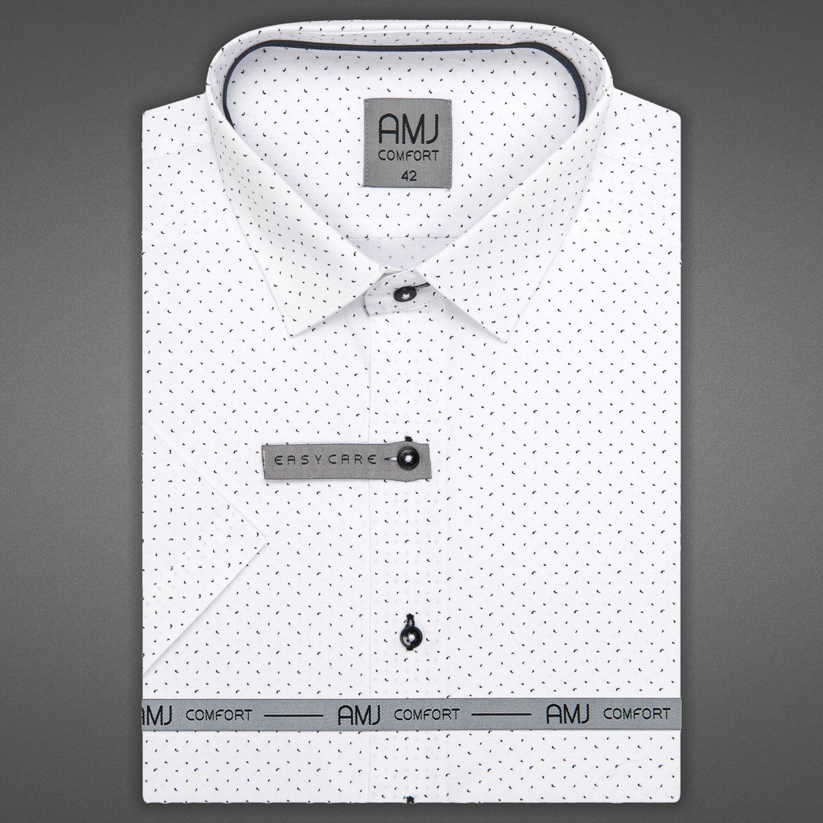 Pánská vzorovaná košile AMJ Comfort s krátkým rukávem. Pánská košile je v bílé barvě se vzorem drobných černých čárek s černými doplňky. Košile se hod...