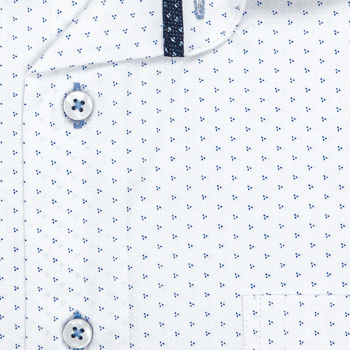 Pánská vzorovaná košile AMJ Comfort s dlouhým rukávem. Pánská košile je v bílé barvě se vzorem drobných modrých tečkovan...