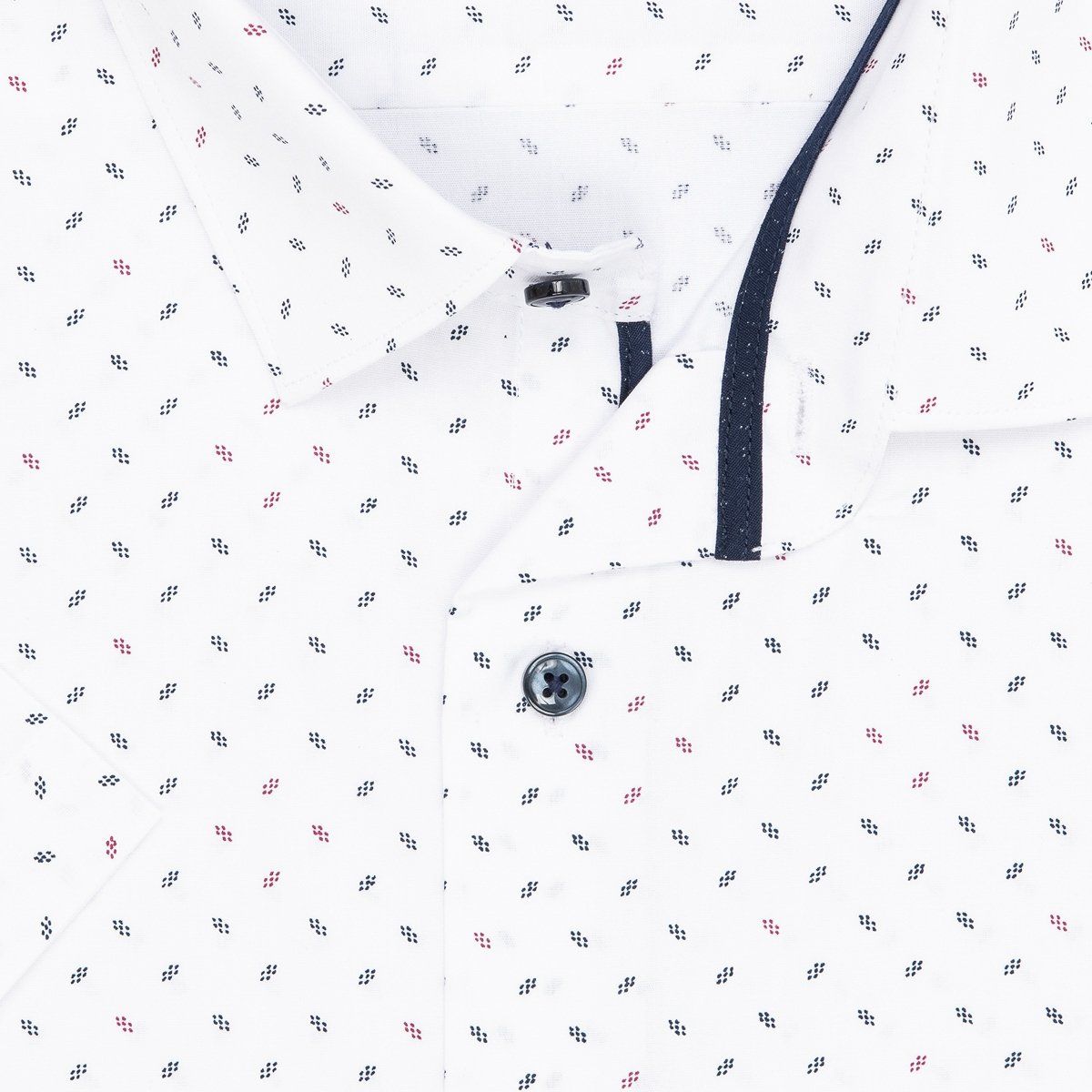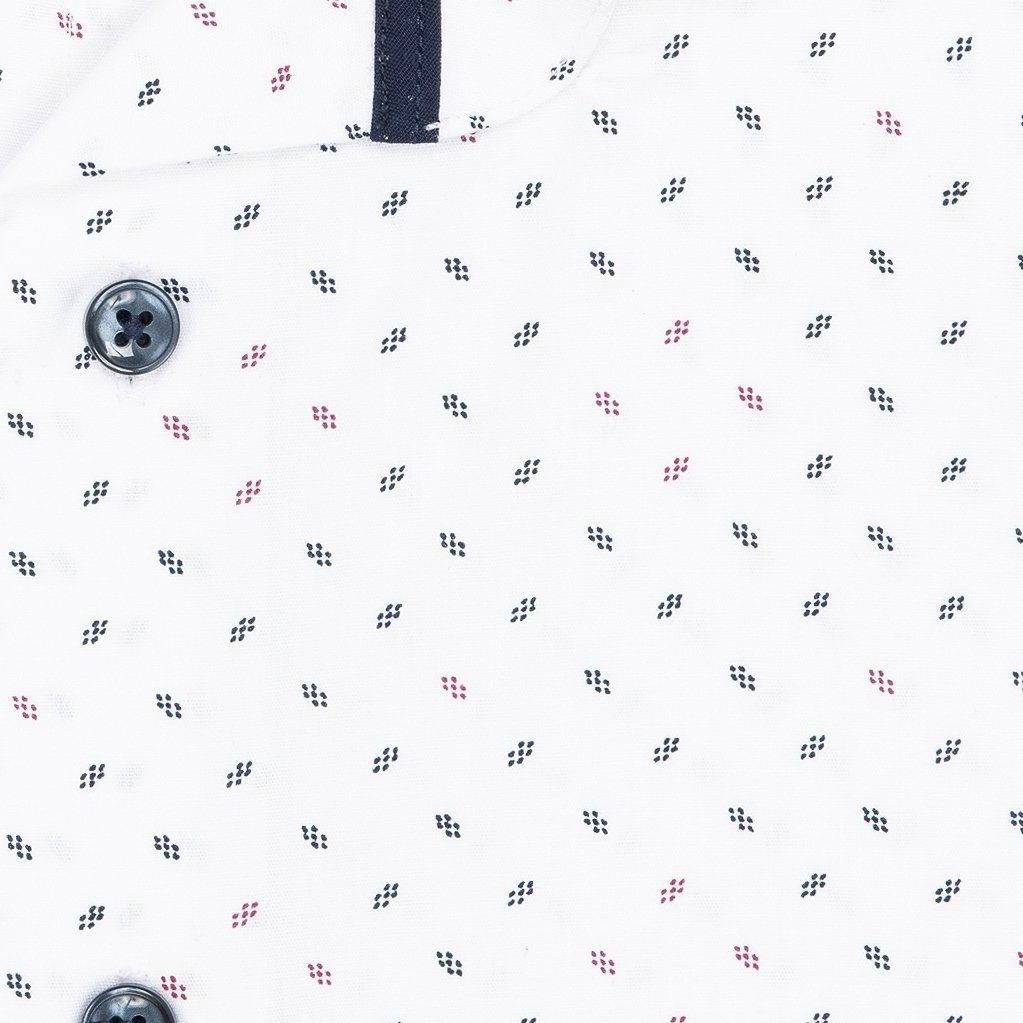 Módní pánská vzorovaná košile s krátkým rukávem a tištěným vzorem. Košile je vhodná jak do obleku s kravatou, tak pro běžné nošení. Díky použití kvalitního materiálu (95% bavlny 5% spandex) Vám bude v košili velmi příjemně. Nová moderní úprava „EASY CARE“ zajistí, že se košile méně krčí a její žehlení je o hodně snadnější. Košili je možné prát na 40°C běžným pracím programem (není vhodné sušení v sušičce). Košile je již vysrážená, při dodržení pokynů k praní se nesrazí. Budete-li prát na nízké otáčky, práci s žehlením si u této košile můžete skoro odpustit.