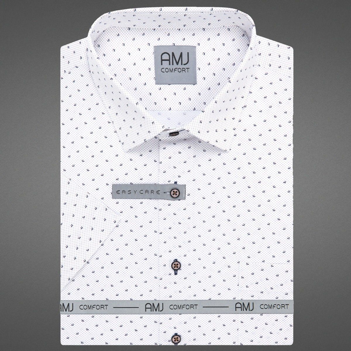 Pánská košile AMJ bavlněná, bílá vzorovaná, VKB1369, krátký rukáv (regular + slim fit)