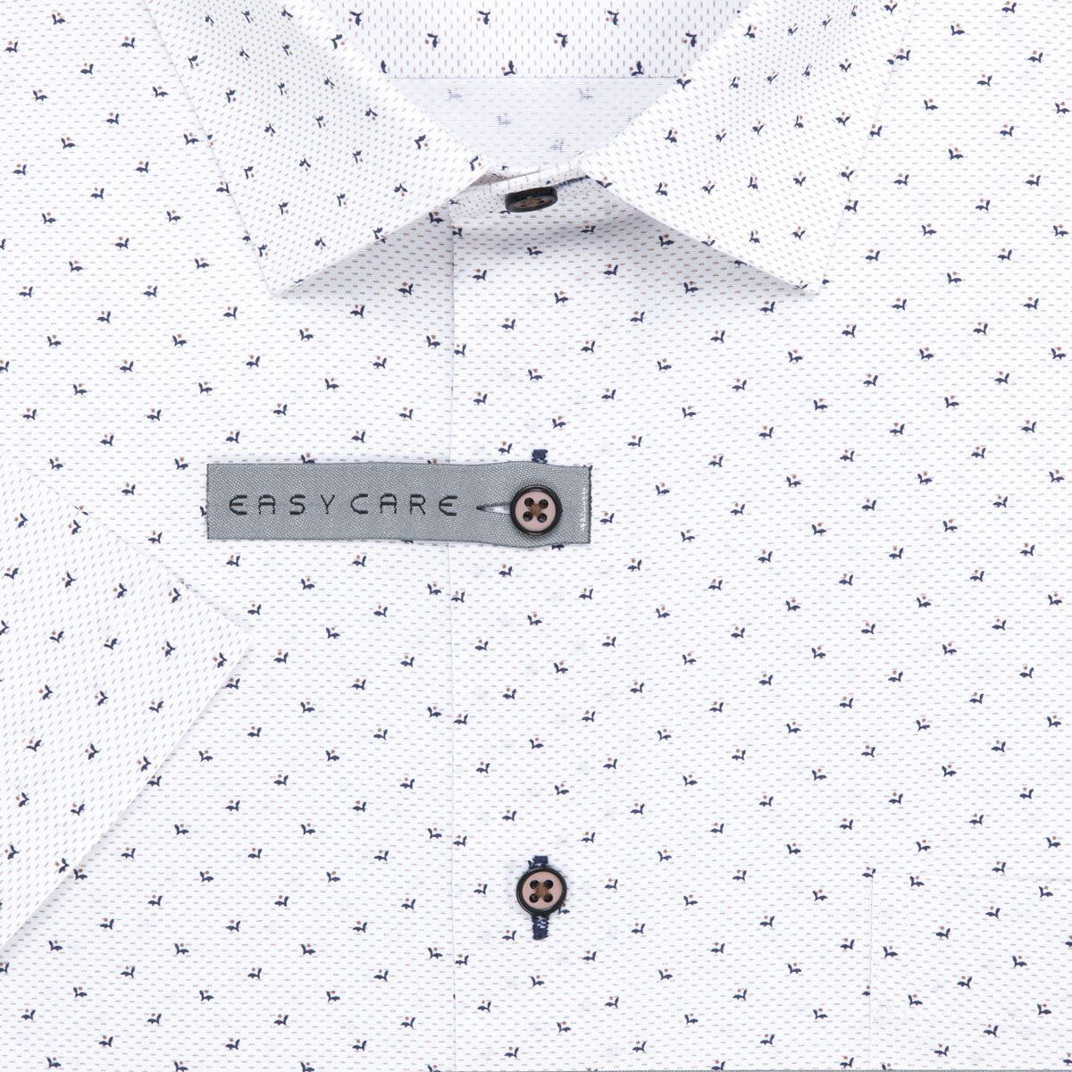 Módní pánská vzorovaná košile s krátkým rukávem a tištěným vzorem. Košile je vhodná jak do obleku s kravatou, tak pro běžné nošení. Díky použití kvalitního materiálu (95% bavlny 5% spandex) Vám bude v košili velmi příjemně. Nová moderní úprava „EASY CARE“ zajistí, že se košile méně krčí a její žehlení je o hodně snadnější. Košili je možné prát na 40°C běžným pracím programem (není vhodné sušení v sušičce). Košile je již vysrážená, při dodržení pokynů k praní se nesrazí. Budete-li prát na nízké otáčky, práci s žehlením si u této košile můžete skoro odpustit.