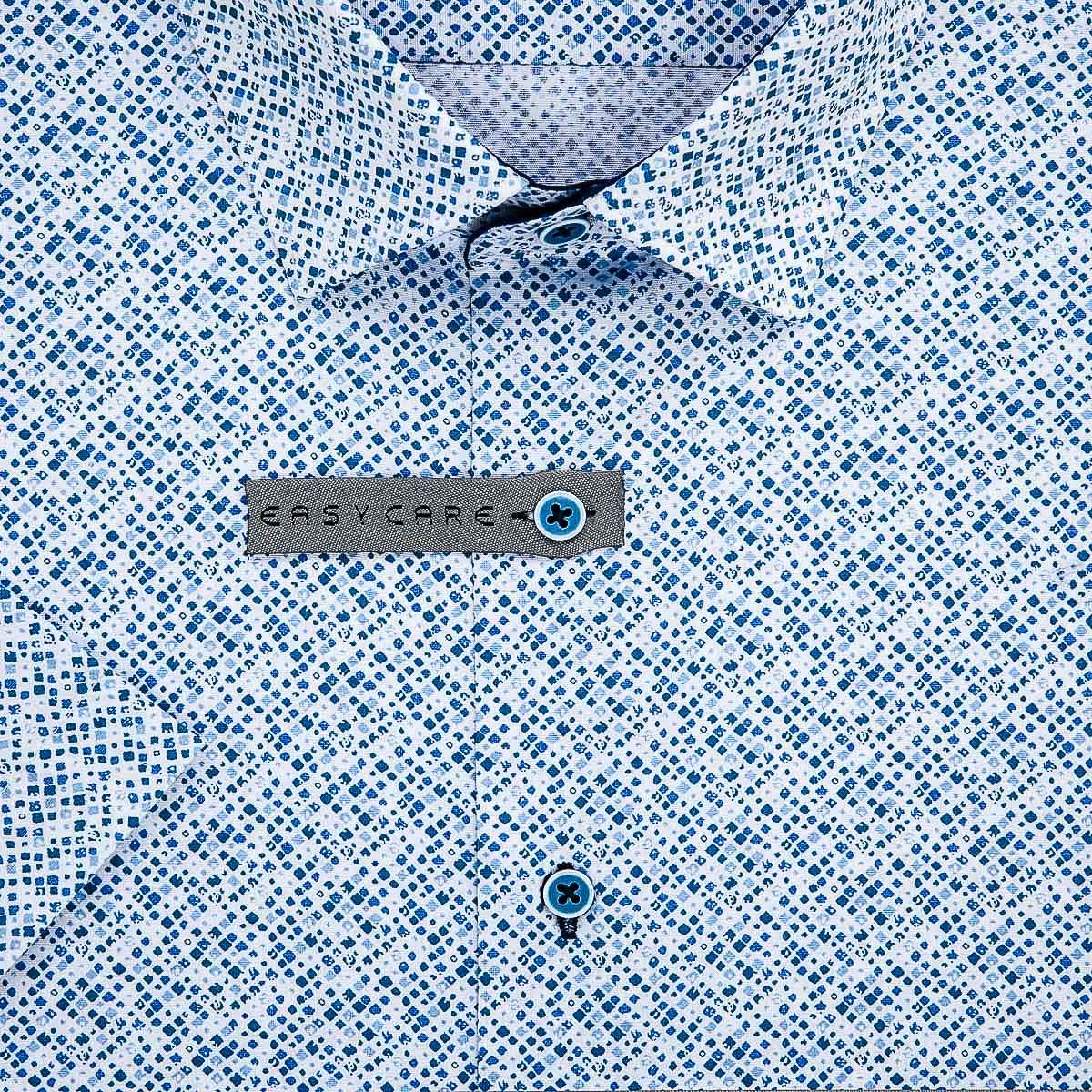 Módní pánská vzorovaná košile s krátkým rukávem a tištěným vzorem. Košile je vhodná jak do obleku s kravatou, tak pro běžné nošení. Díky použití kvalitního materiálu (95% bavlny 5% spandex) Vám bude v košili velmi příjemně. Nová moderní úprava „EASY CARE“ zajistí, že se košile méně krčí a její žehlení je o hodně snadnější. Košili je možné prát na 40°C běžným pracím programem (není vhodné sušení v sušičce). Košile je již vysrážená, při dodržení pokynů k praní se nesrazí. Budete-li prát na nízké otáčky, práci s žehlením si u této košile můžete skoro odpustit.