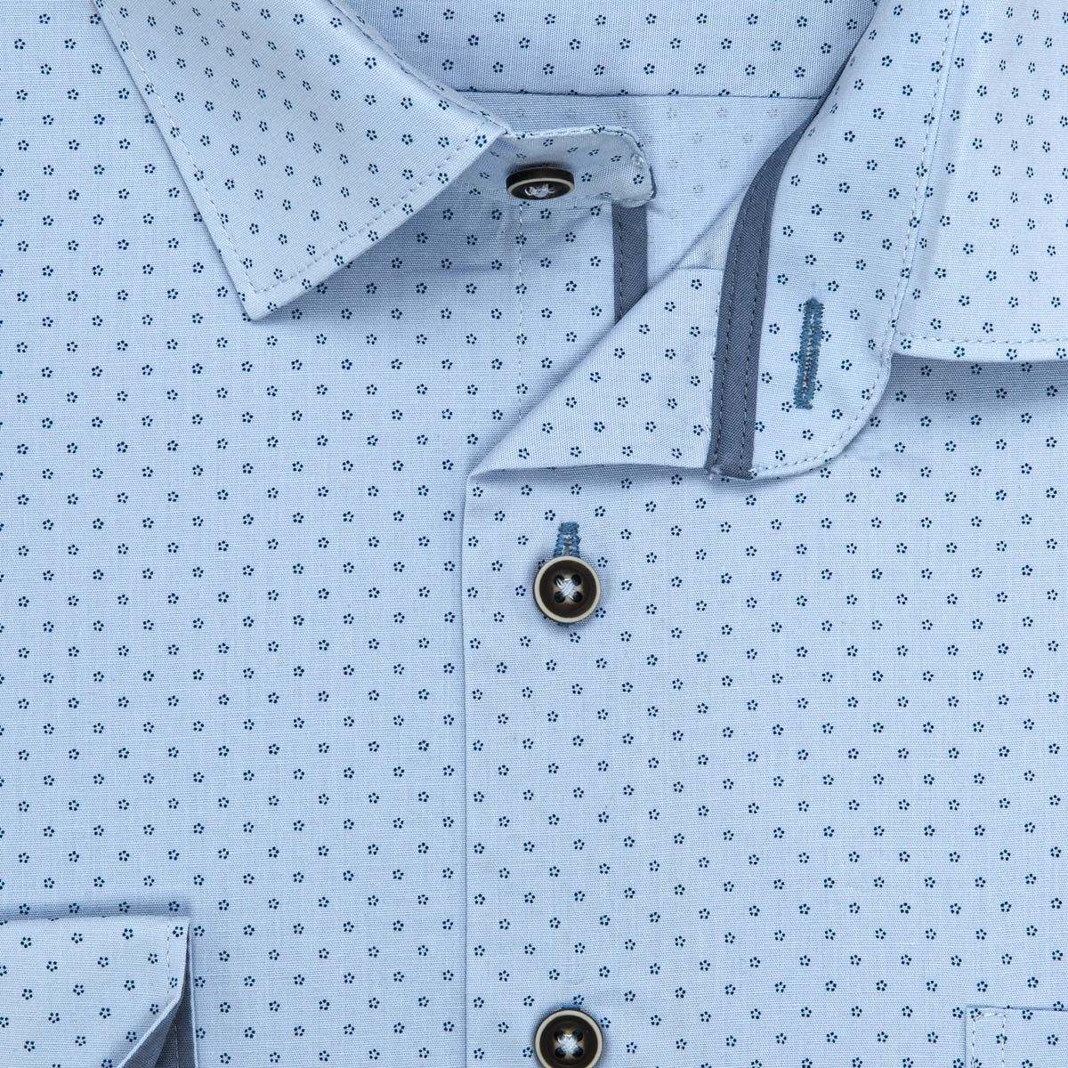 Pánská vzorovaná košile AMJ Comfort s dlouhým rukávem. Pánská košile je ve světle modré barvě se vzorem tmavě modrých te...