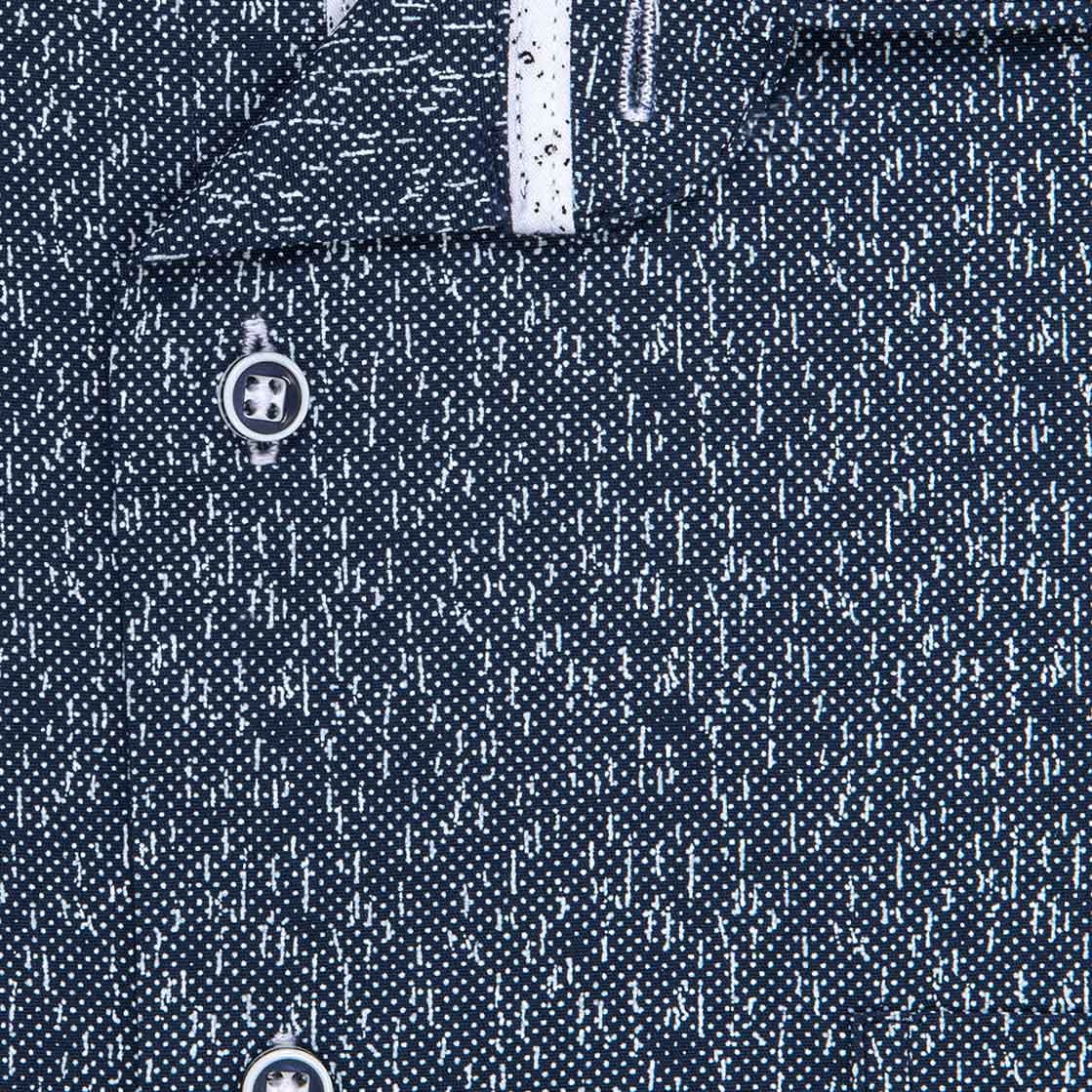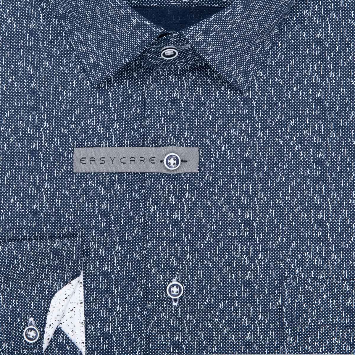Pánská vzorovaná košile AMJ Comfort s dlouhým rukávem. Pánská košile je v tmavě modré barvě se vzorem prší (bílých čárek...