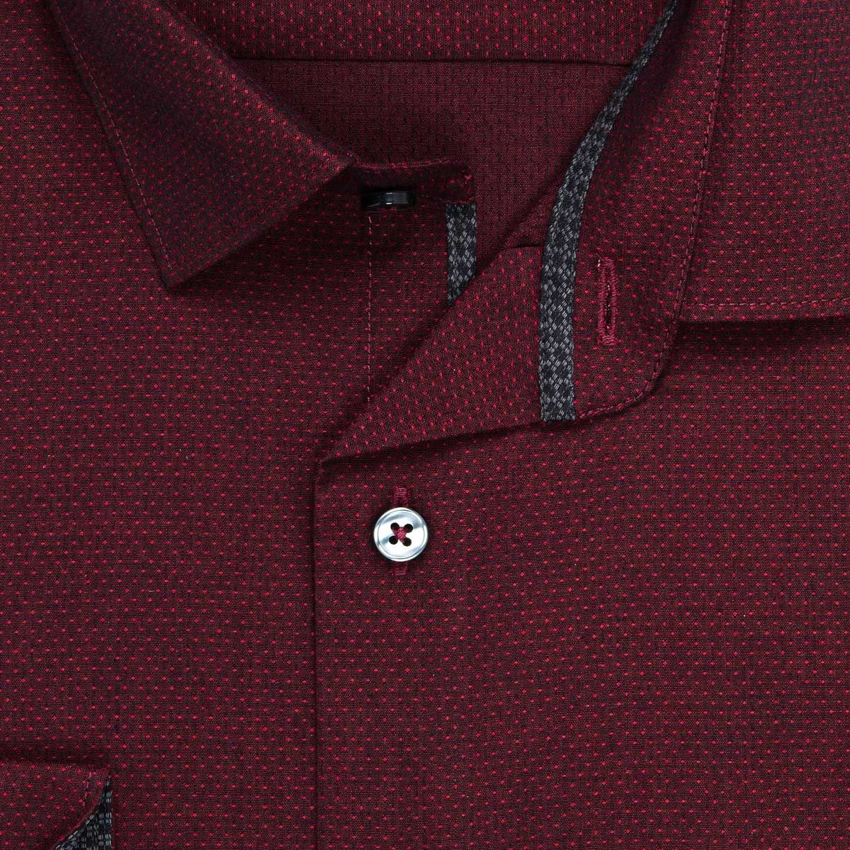 Pánská košile AMJ bavlněná, vínová jemně tečkovaná, VDR1428, dlouhý rukáv (regular + slim-fit + prodloužený slim-fit)