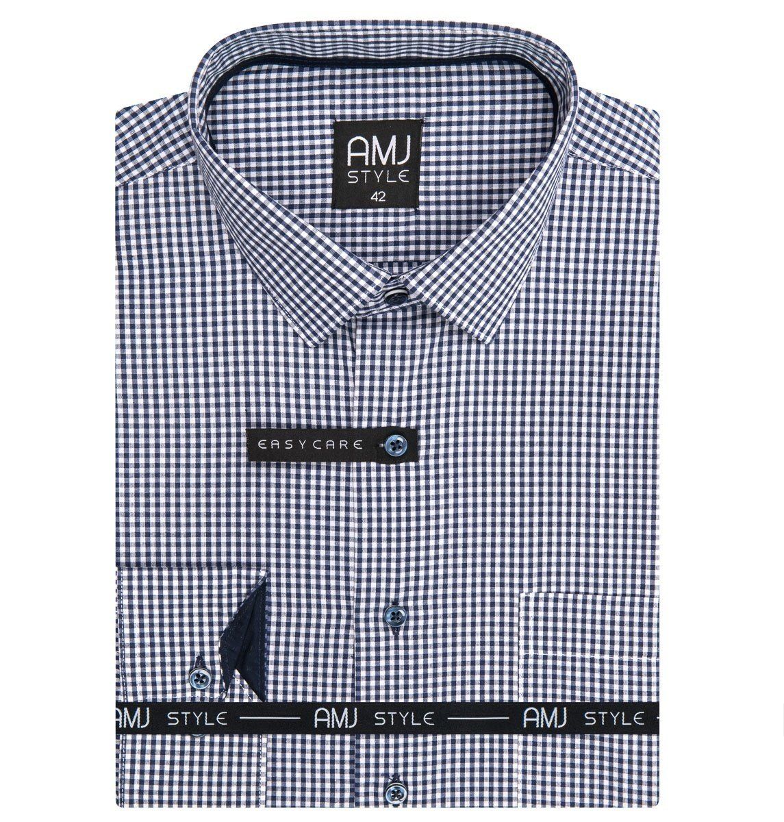 Pánská košile AMJ, modro-bílé drobné káro VDR1263, dlouhý rukáv (regular + slim-fit)