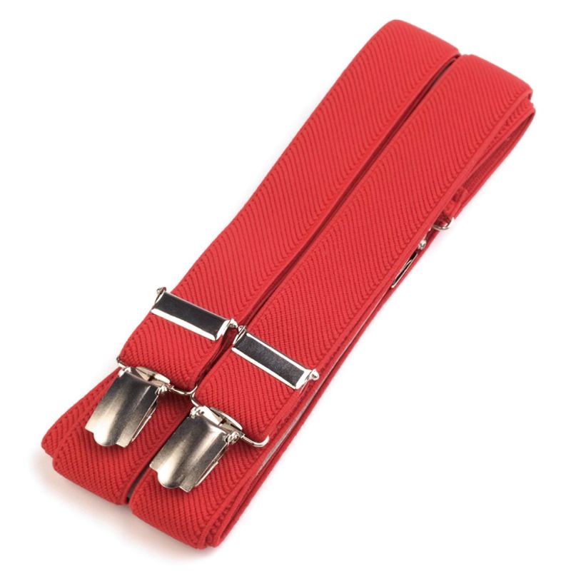 Pánské šle červené s nastavitelnou délkou 125 cm, šíře 2,5 cm v provedení ve tvaru písmene "X" s uchycením na žabky.