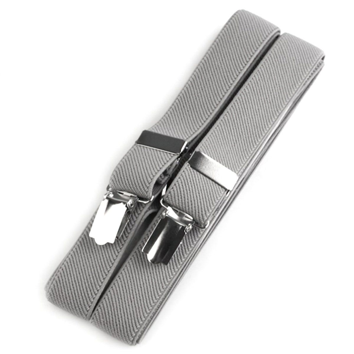 Pánské šle v šedo-béžové barvě s nastavitelnou délkou 125 cm, šíře 2,5 cm v provedení ve tvaru písmene "X" s uchycením na žabky.