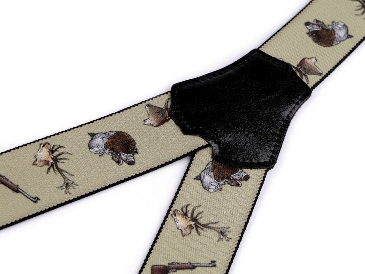 Pánské šle s mysliveckým vzorem pušek a jelenů v béžovo-zelené barvě jsou určeny pro všechny příznivce myslivosti, lesni...