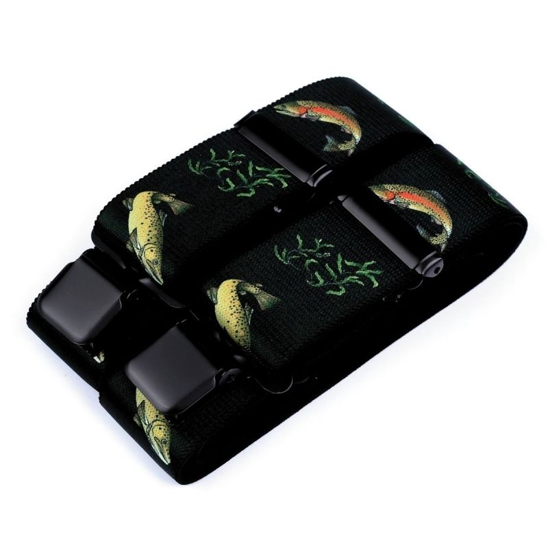Pánské šle s rybářským vzorem štik v tmavě zelené barvě jsou určeny pro všechny rybáře a příznivce rybářství nebo jako stylový dárek. Šle jsou s nastavitelnou délkou 120 cm, šíře 4 cm v provedení ve tvaru písmene "Y" s uchycením na žabky.