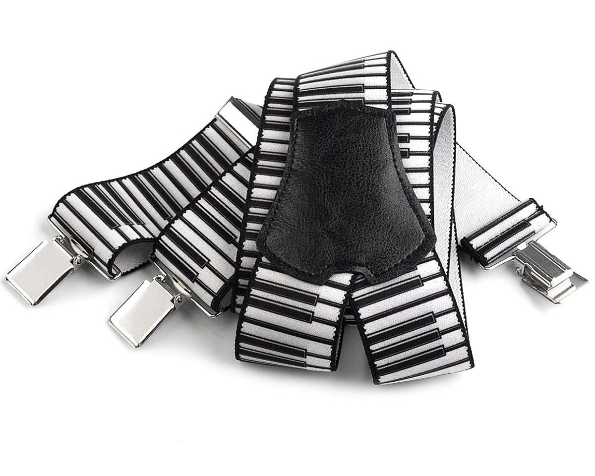 Unisexové šle s hudebním vzorem piána - klaviatury v černo-bílém provedení jsou určeny pro všechny hudebníky a hudební n...