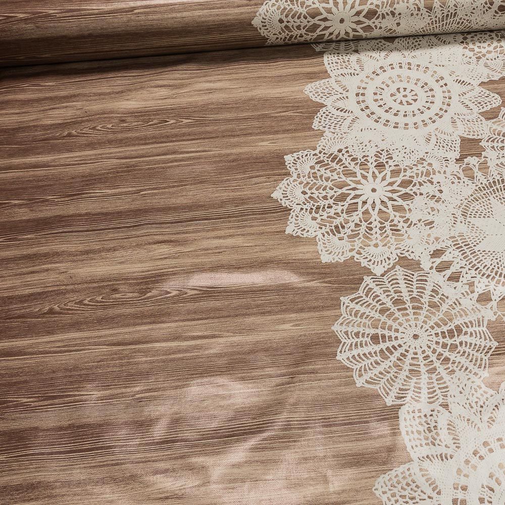 Ubrus PVC s textilním podkladem 464-1, krajka na béžovém dřevě, š.140cm (metráž)