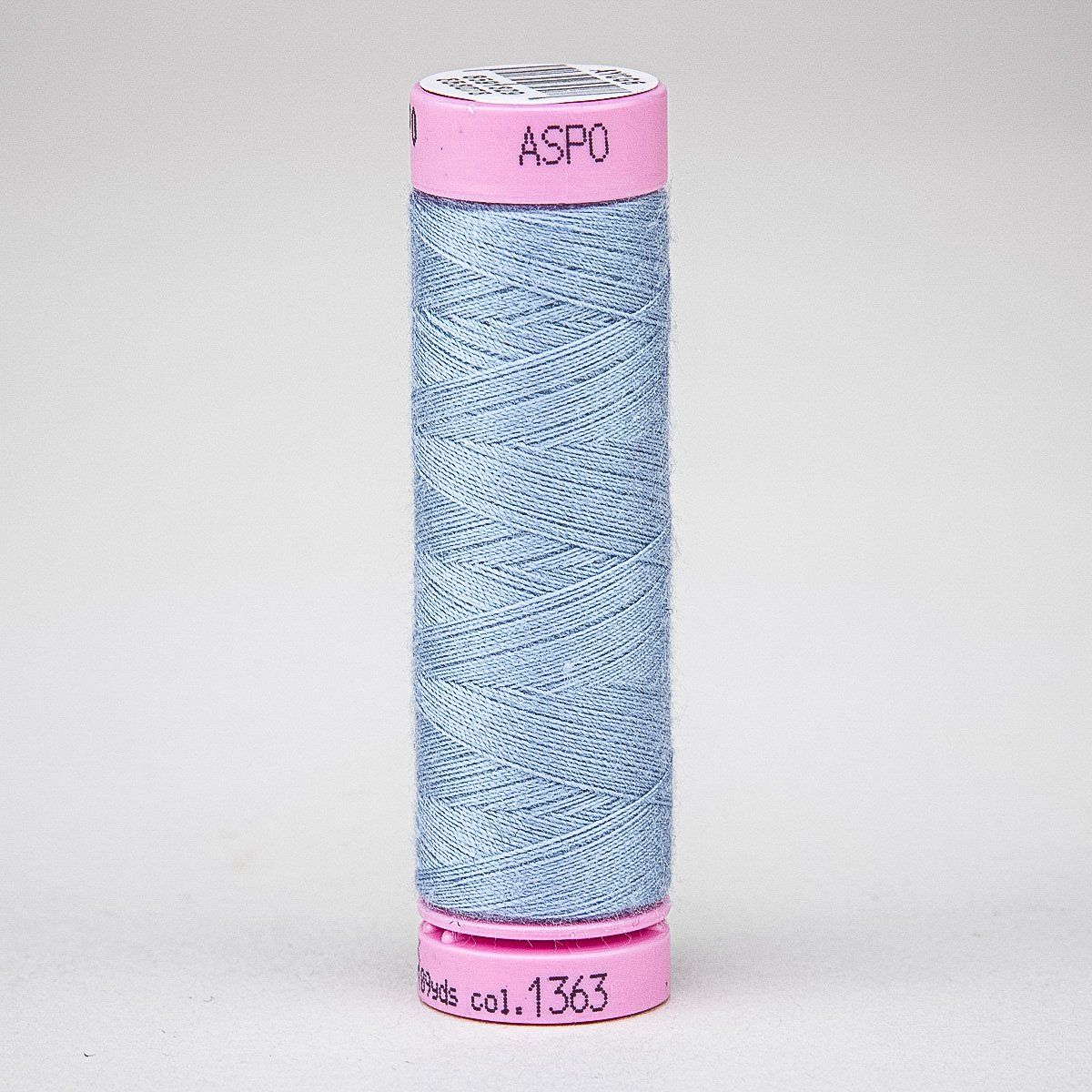 Univerzální hobby nit značky Amann z řady ASPO 120 v ledově modré barvě. Polyesterové nitě z řady ASPO o síle 120 jsou univerzální šicí nitě pro domácnost, vyráběné v ČR. Jsou vhodné pro ruční i strojové šití všech druhů textilních materiálů z přírodních, směsových a plně syntetických vláken. Na úplety je doporučeno použít strečovou jehlu. Nitě ASPO jsou vysoce pevné - cca 990 CN, tažnost 12 %. Nitě mají přírodní vzhled, jsou odolné vůči oděru, bakteriím i plísním, jsou stálobarevné na světle a nesráží se při praní. Doporučená síla jehly je 70-90.Nitě jsou nepostradatelným základem každé švadleny. Správný výběr nitě zaručí kvalitní ušití a pevný a dlouho držící steh. Nabídka nití začíná u klasických šicích polyesterových nebo bavlněných nití a pokračuje přes lněné, overlockové, teflonové či texturované nitě. Nitě jsou nabízeny v nespočtu barev a v různých návinech. Menší náviny jsou vhodné pro ruční šití, větší náviny od 500 m naopak oceníte u šití na šicím stroji.