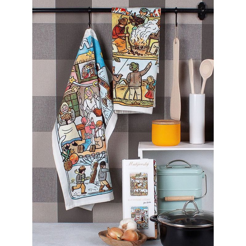 Bavlněné utěrky s motivem dvou ročních období podzim-zima v typické kresbě Josefa Lady v béžovém provedení v rozměru 50x64cm. Utěrky mají jednostranný vzor a jsou vyrobeny ze 100% bavlny. Utěrky jsou v dárkovém balení vždy 1x motiv podzim, 1x motiv zima.