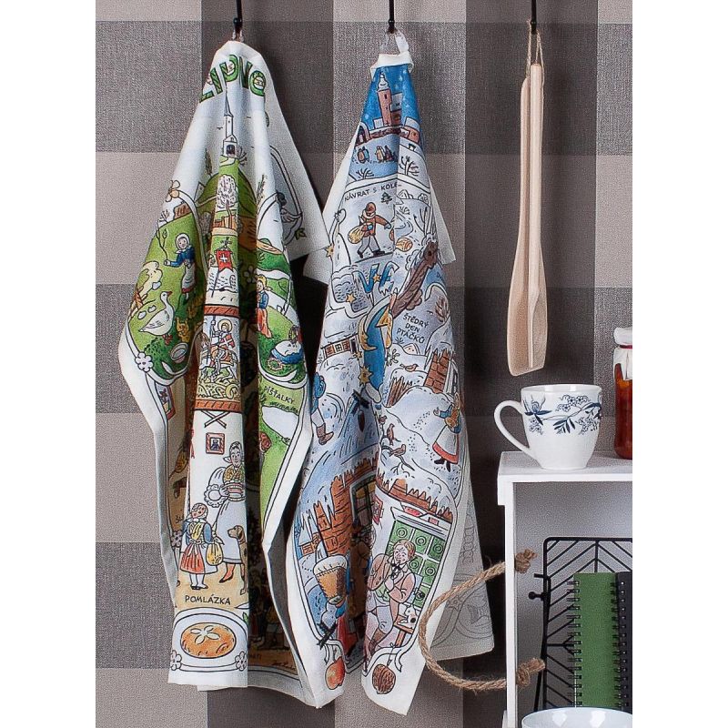 Utěrky JOSEF LADA VELIKONOCE - VÁNOCE, zelená a modrá, 2 kusy 50x64cm