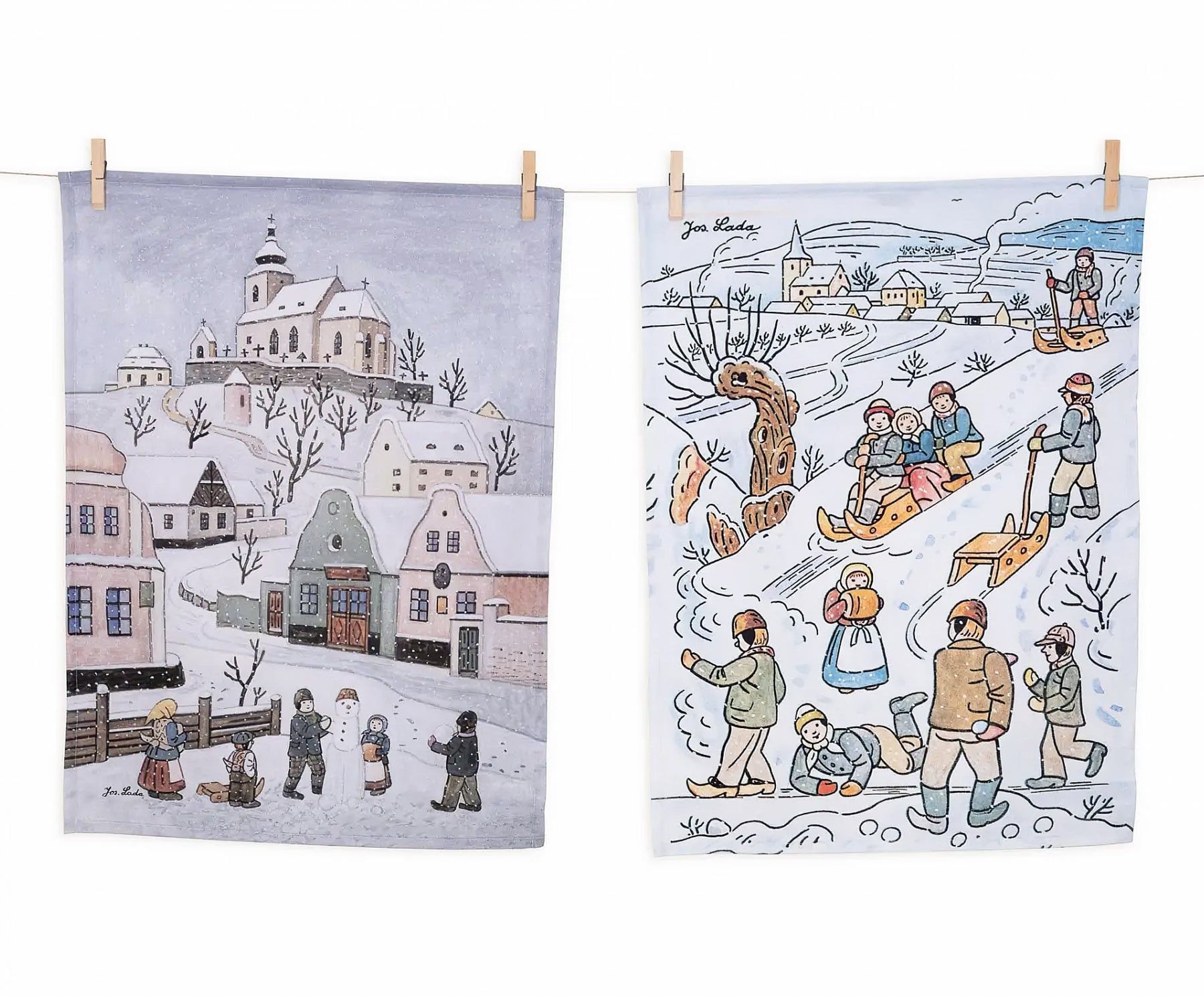 Utěrky JOSEF LADA ZIMA-ZIMNÍ ZÁBAVY, bílá, 2 kusy 50x64cm Utěrky JOSEF LADA ZIMA-ZIMNÍ ZÁBAVY, bílá, 2 kusy 50x64cm