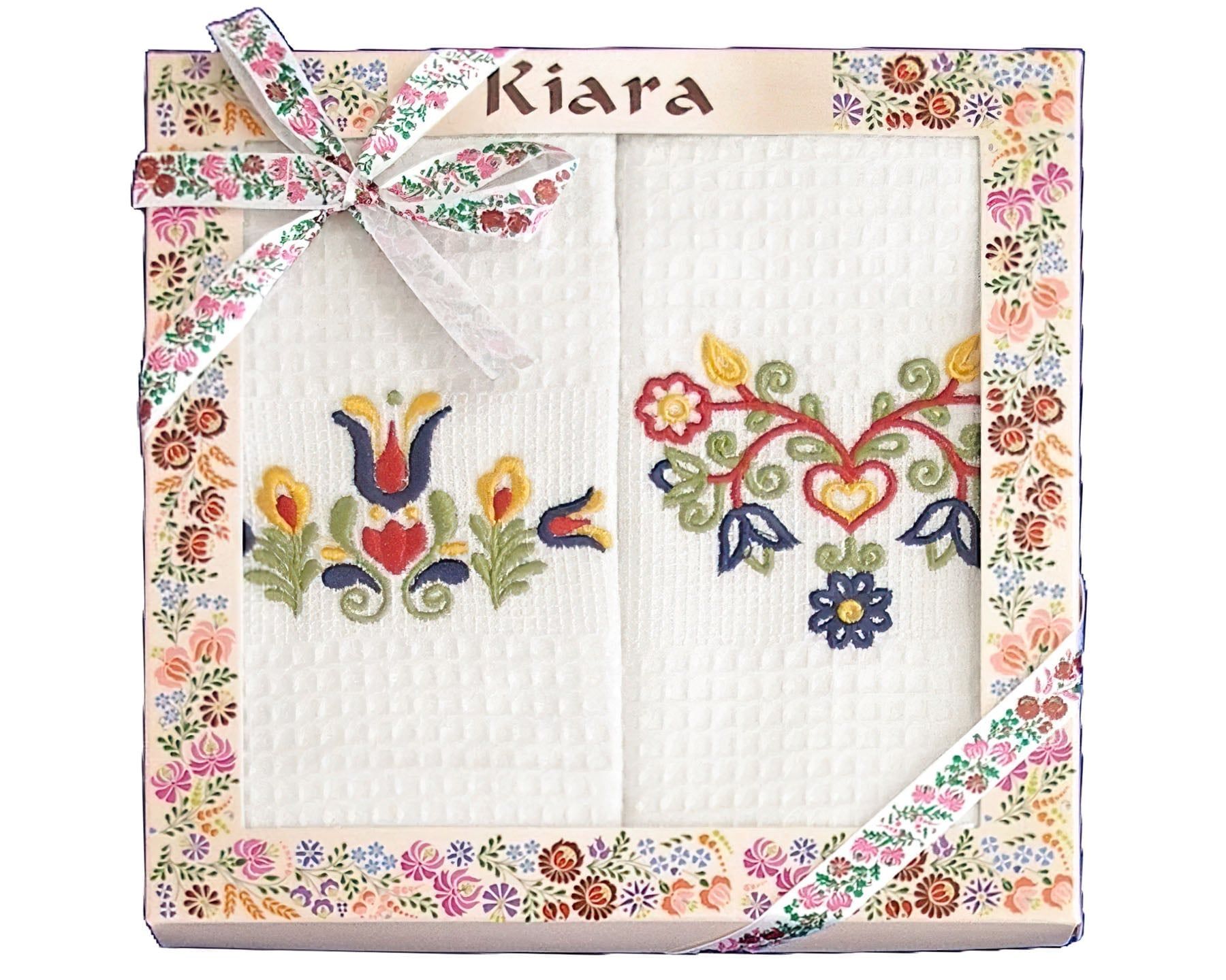 Utěrky KIARA 103 vaflové vyšívané, dárkové balení, folklór na bílé, 2 kusy 50x70cm