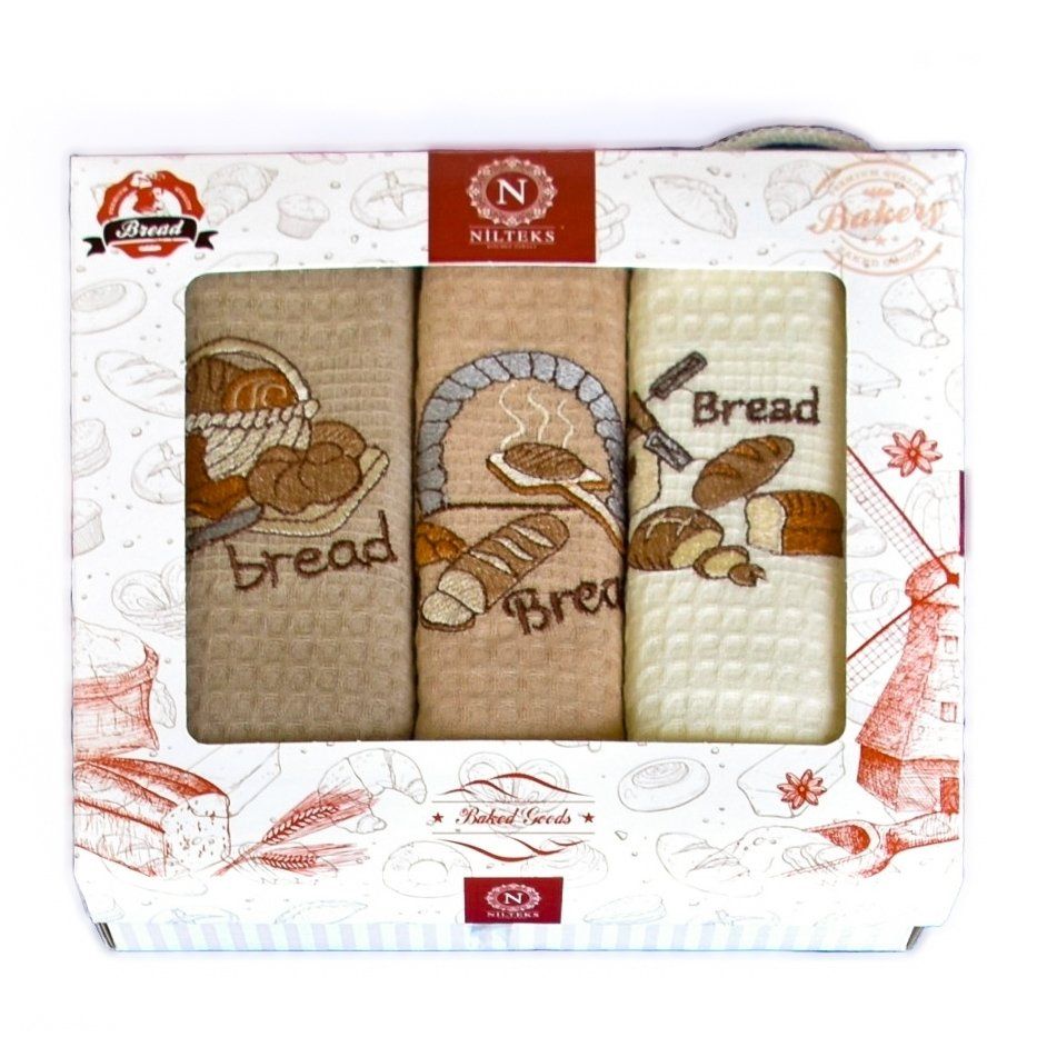 Utěrky MERLIN 91 vaflové vyšívané, dárkové balení, pečivo, béžová, 3 kusy 50x70cm