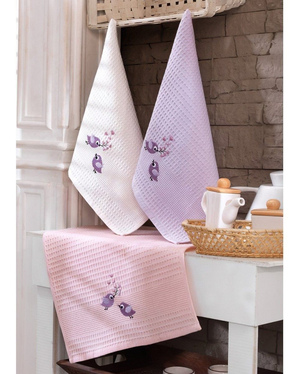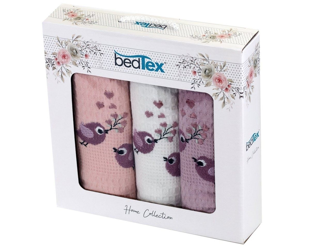 Utěrky vaflové / dárkové balení PTÁČCI, růžové s výšivkou, 3 kusy 40x60cm