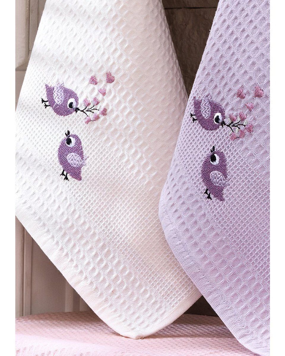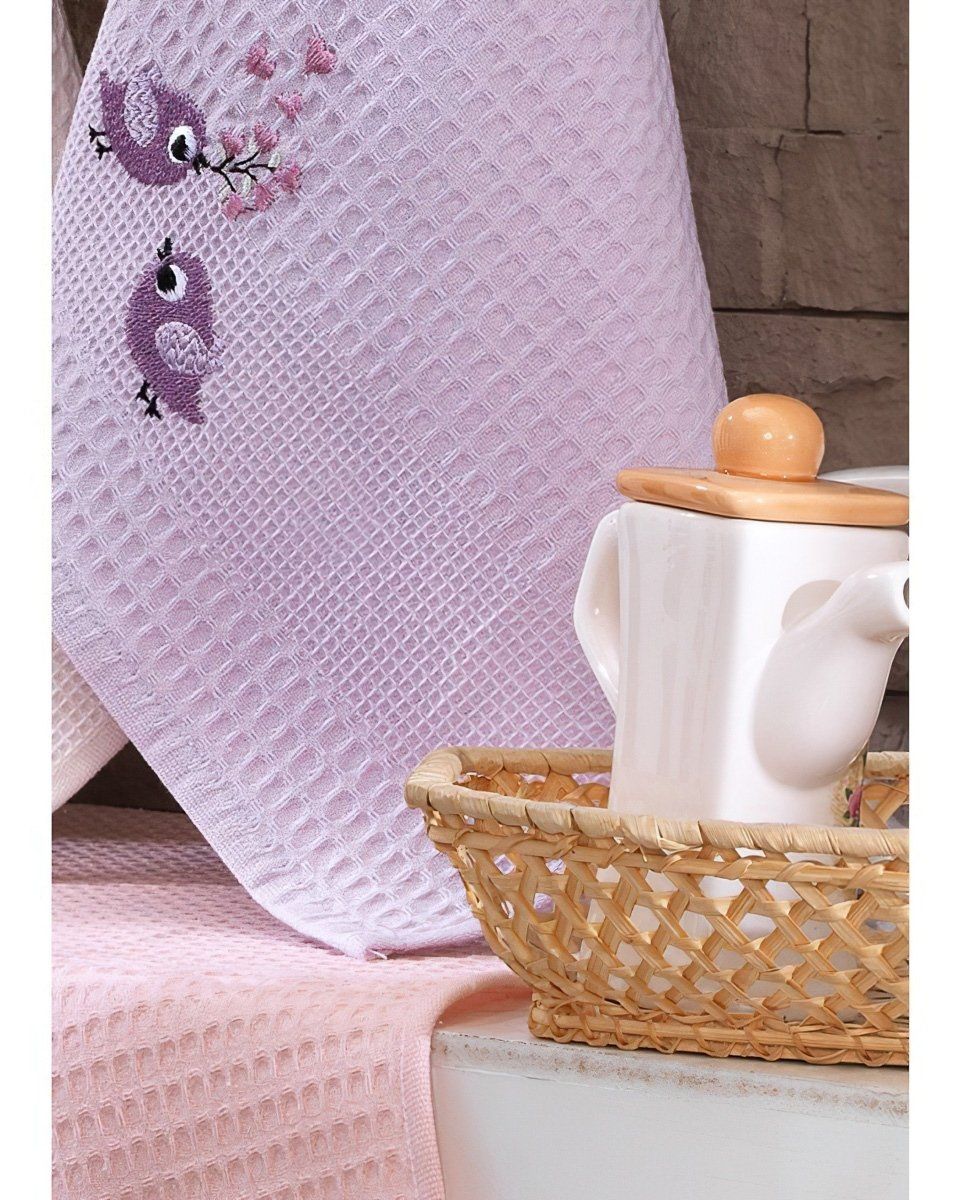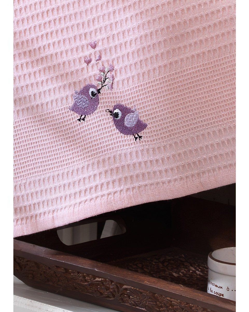 Bavlněné vaflové utěrky s motivem vyšívaných ptáčků v růžových barvách. Balení obsahuje 3 kusy utěrek v rozměru 40x60cm....
