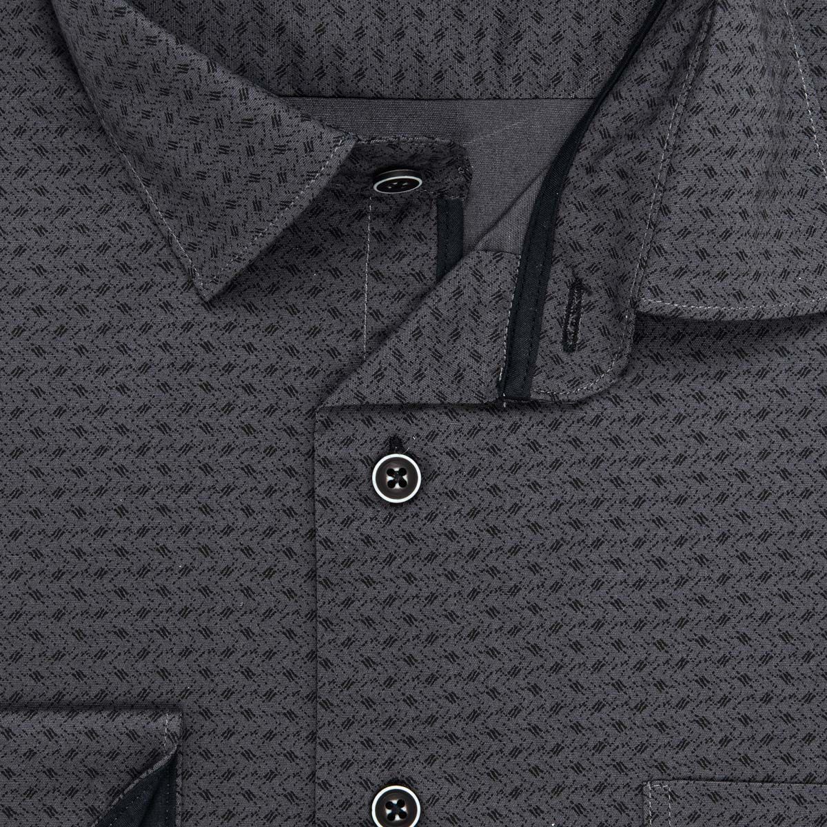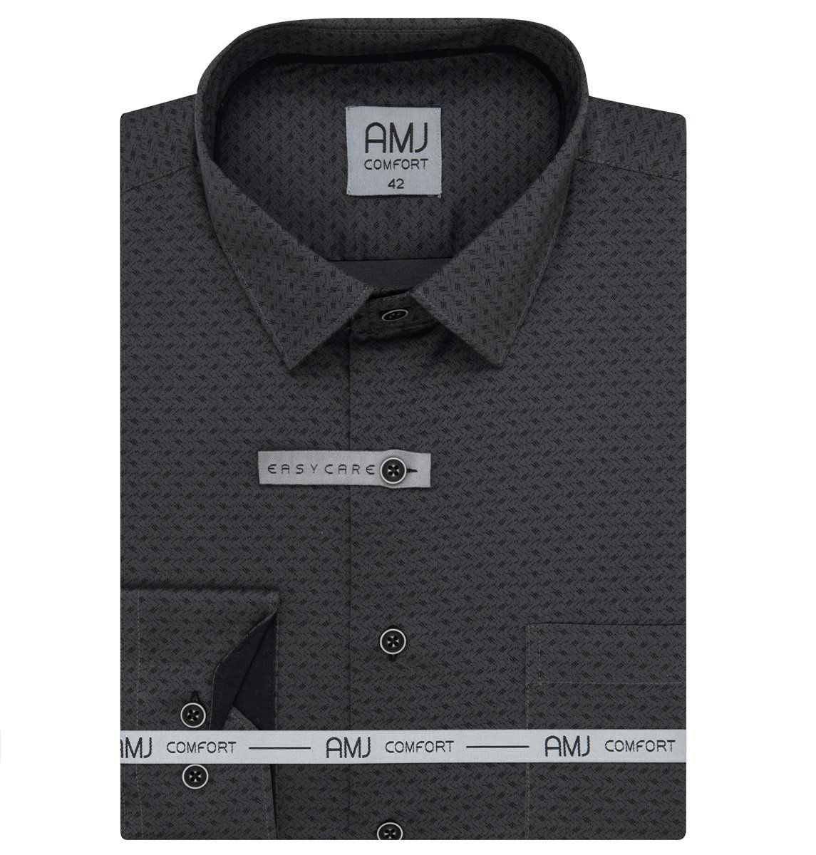 Pánská vzorovaná košile AMJ Comfort s dlouhým rukávem. Pánská košile je v tmavě šedé barvě s čárkovaným cikcak vzorem s ...