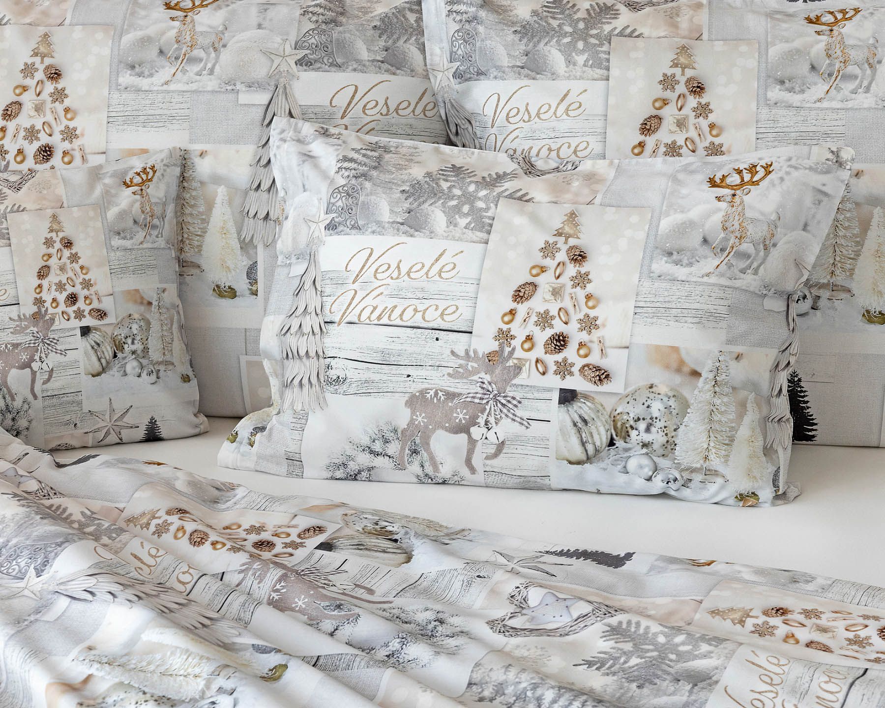 Bavlněné povlečení s vánočními motivy v příjemných béžových barvách. Povlak na přikrývku i povlak na polštář jsou z obou...