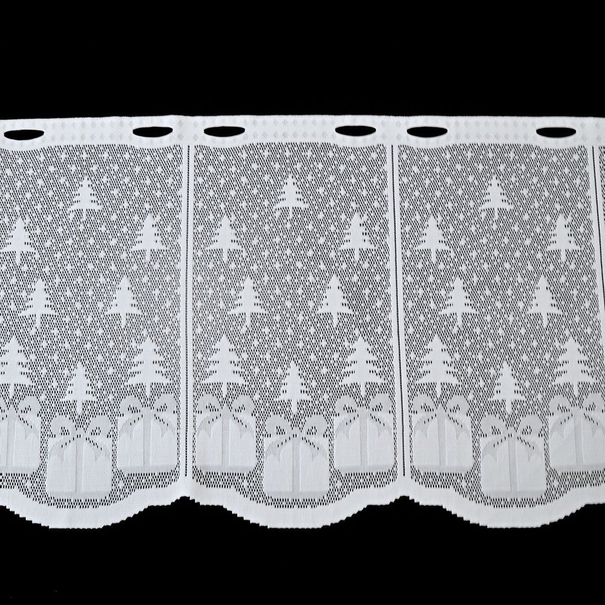 Metrážová žakárová vitrážová záclona tkaná do panelů se zimním vánočním vzorem dárků a stromečků na bílém podkladě, s bordurou. Záclona má v horní části pevný okraj s dírkami pro navlečení na tyč. Jeden panel má šířku cca 23cm, proto doporučujeme objednávat násobky cca 23 cm, abychom Vám odeslali záclonu neprostřiženou. Záclona je vyrobena ze 100% polyesteru a je dostupná v různých výškách. Výška záclony je měřena v nejdelším místě. Šířku záclony zadejte do kolonky "Množství"