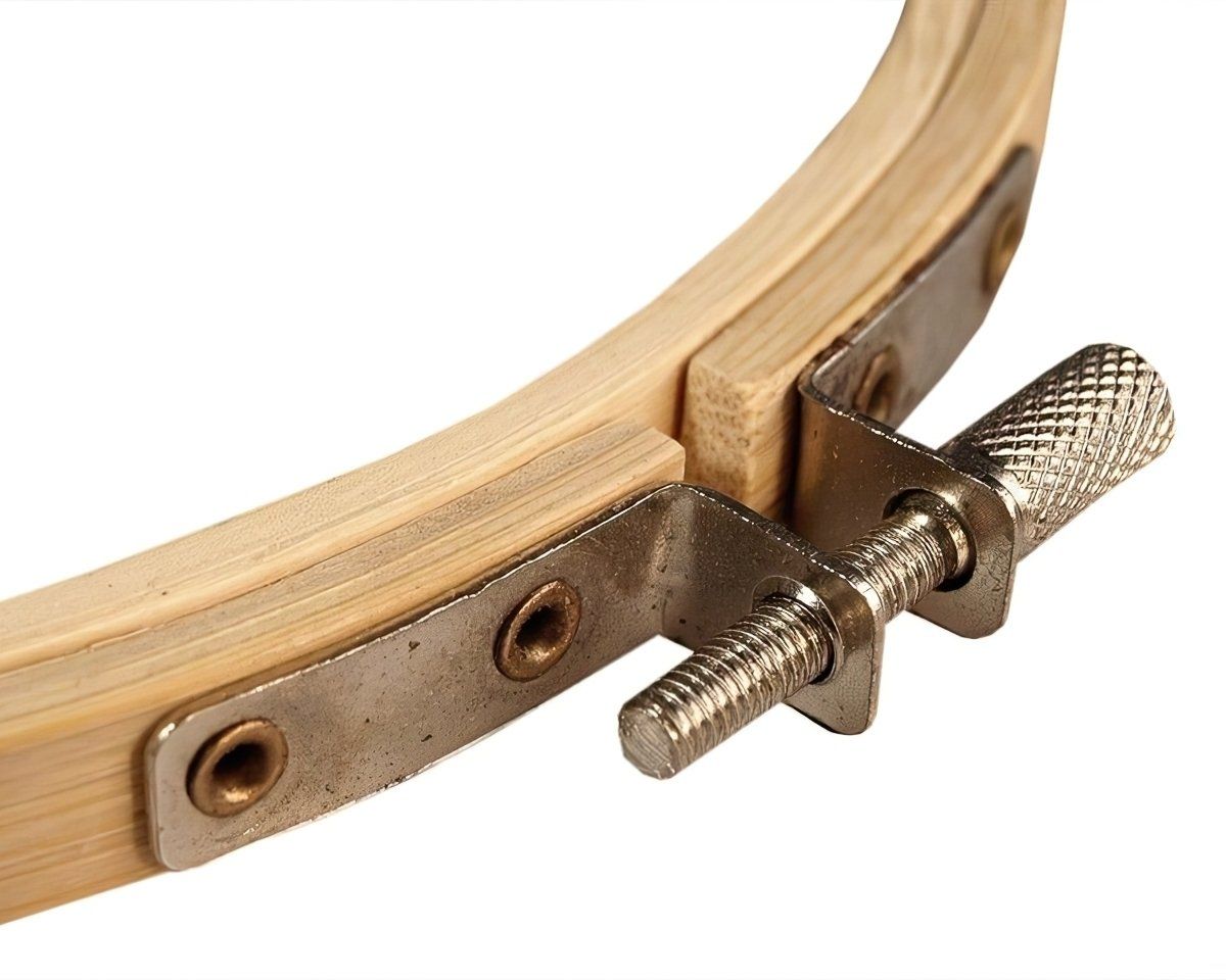 Vyšívací kruh z bambusového světlého dřeva slouží k vypnutí vyšívací látky. Kruh je opatřen kovovým stahovacím šroubem, pomocí kterého přichytnete a stáhnete vyšívací tkaninu. Vnější průměr kruhu je 16 cm, střední 15 cm a vnitřní 14,5 cm.