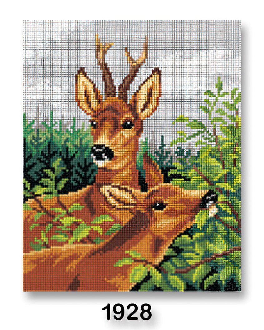 Vyšívací předloha s motivem srnčího páru na zeleném pozadí. Předloha na vyšívání ze 100% bavlny je vhodná zejména na křížkový steh, nejlépe při použití přízí mouline (mulinka), které na výšivce nejlépe vyniknou. Obrázek na vyšívání má rozměr 24 x 30 cm.