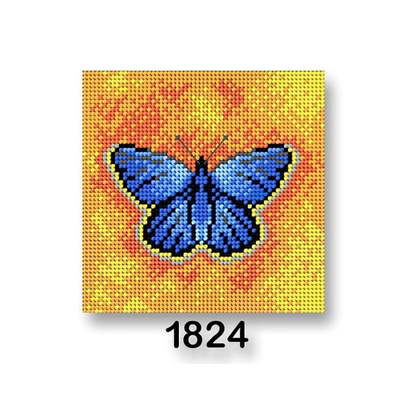 Vyšívací předloha, obrázek na vyšívání 70244/1824, motýl 3, modrý na žluté, 15x15cm
