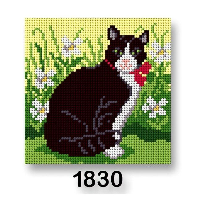 Vyšívací předloha s motivem černé kočky s červenou mašlí na zeleném pozadí. Předloha na vyšívání ze 100% bavlny je vhodná zejména na křížkový steh, nejlépe při použití přízí mouline (mulinka), které na výšivce nejlépe vyniknou. Obrázek na vyšívání má rozměr 15 x 15 cm.