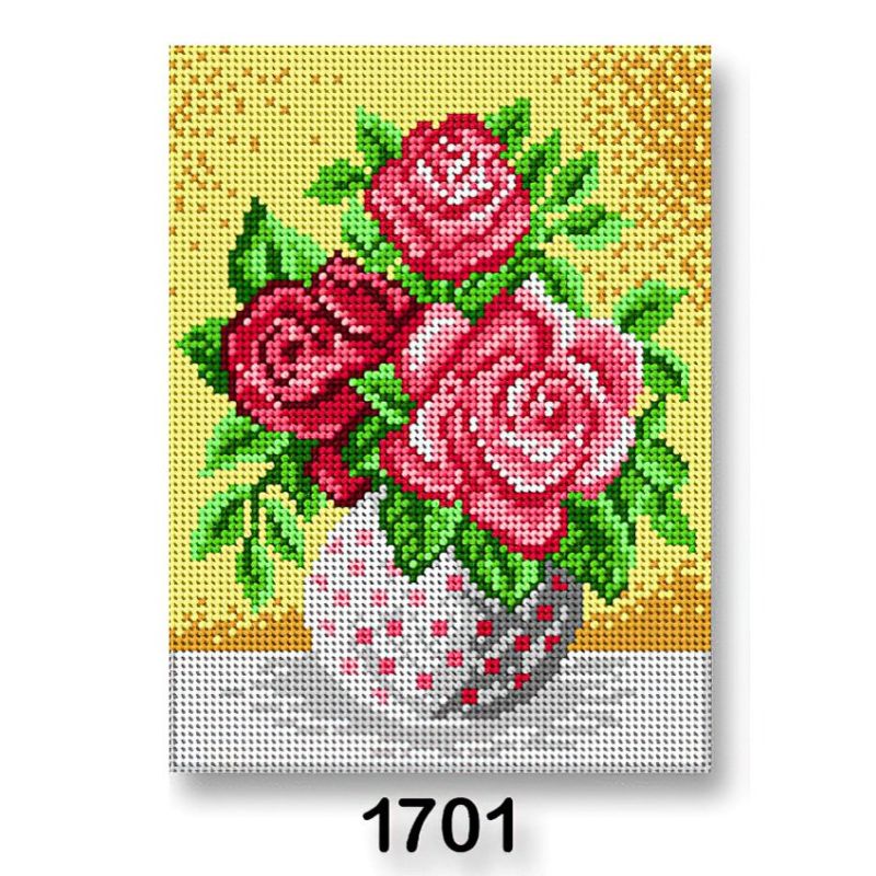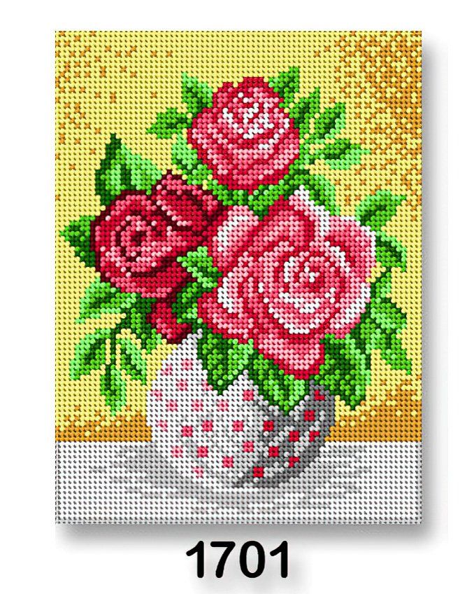 Vyšívací předloha s motivem růžových růží na žlutém pozadí. Předloha na vyšívání ze 100% bavlny je vhodná zejména na křížkový steh, nejlépe při použití přízí mouline (mulinka), které na výšivce nejlépe vyniknou. Obrázek na vyšívání má rozměr 18 x 24 cm.