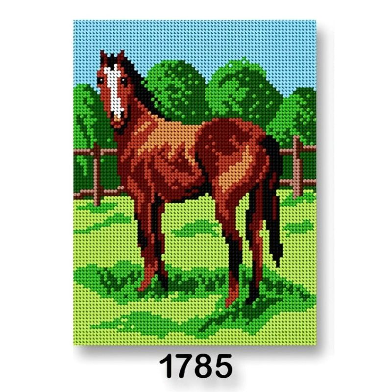Vyšívací předloha s motivem hnědého koně na zelené louce. Předloha na vyšívání ze 100% bavlny je vhodná zejména na křížkový steh, nejlépe při použití přízí mouline (mulinka), které na výšivce nejlépe vyniknou. Obrázek na vyšívání má rozměr 18 x 24 cm.