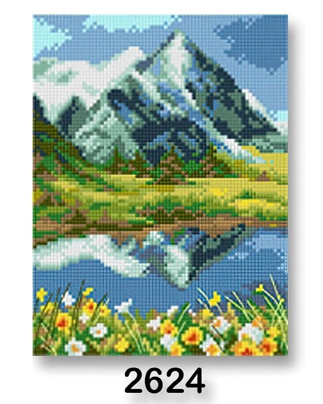 Vyšívací předloha s motivem hor v zeleno-modrých barvách. Předloha na vyšívání ze 100% bavlny je vhodná zejména na křížkový steh, nejlépe při použití přízí mouline (mulinka), které na výšivce nejlépe vyniknou. Obrázek na vyšívání má rozměr 18 x 24 cm.